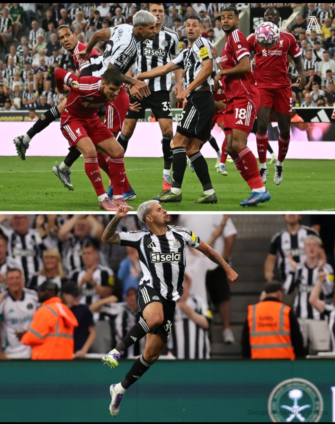 The game was charged with intensity from the outset, fueled by the backdrop of a League Cup final rematch and rumors of Newcastle striker Alexander Isak’s potential move to Liverpool. Liverpool took a commanding 2-0 lead with goals from Ryan Gravenberch and Hugo Ekitike, the latter coming just a minute into the second half. The tide seemed to turn against Newcastle when Anthony Gordon was sent off for a reckless challenge on Virgil van Dijk, leaving the Magpies with ten men. However, Newcastle’s fighting spirit shone through, and in the 57th minute, captain Bruno Guimarães sparked hope by heading in a deep cross from Tino Livramento to make it 2-1. His celebration was electric—running to the Gallowgate End, Guimarães climbed onto an advertising hoarding, roaring with passion and rallying the already fervent Newcastle supporters. The St. James’ Park crowd erupted, and the moment was captured widely on social media, with fans lauding their skipper’s heart and commitment.