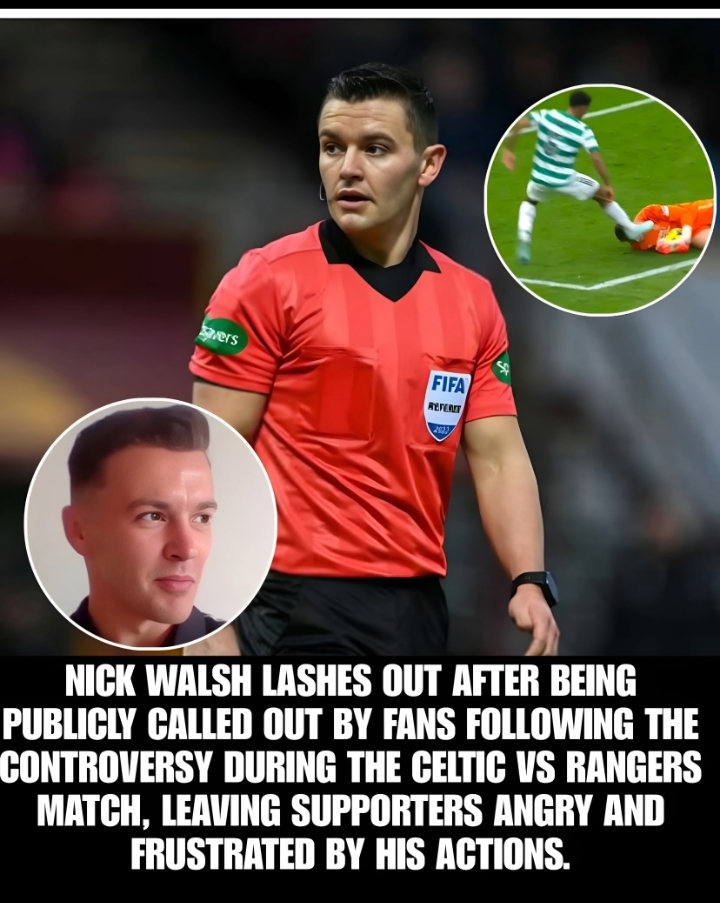 Referee Nick Walsh has found himself at the centre of a storm following his controversial comments during the heated Celtic vs Rangers clash — comments that have now sparked widespread backlash from both sets of supporters. The Scottish official, known for his firm approach on the pitch, is now facing intense public criticism and mounting calls for disciplinary action.