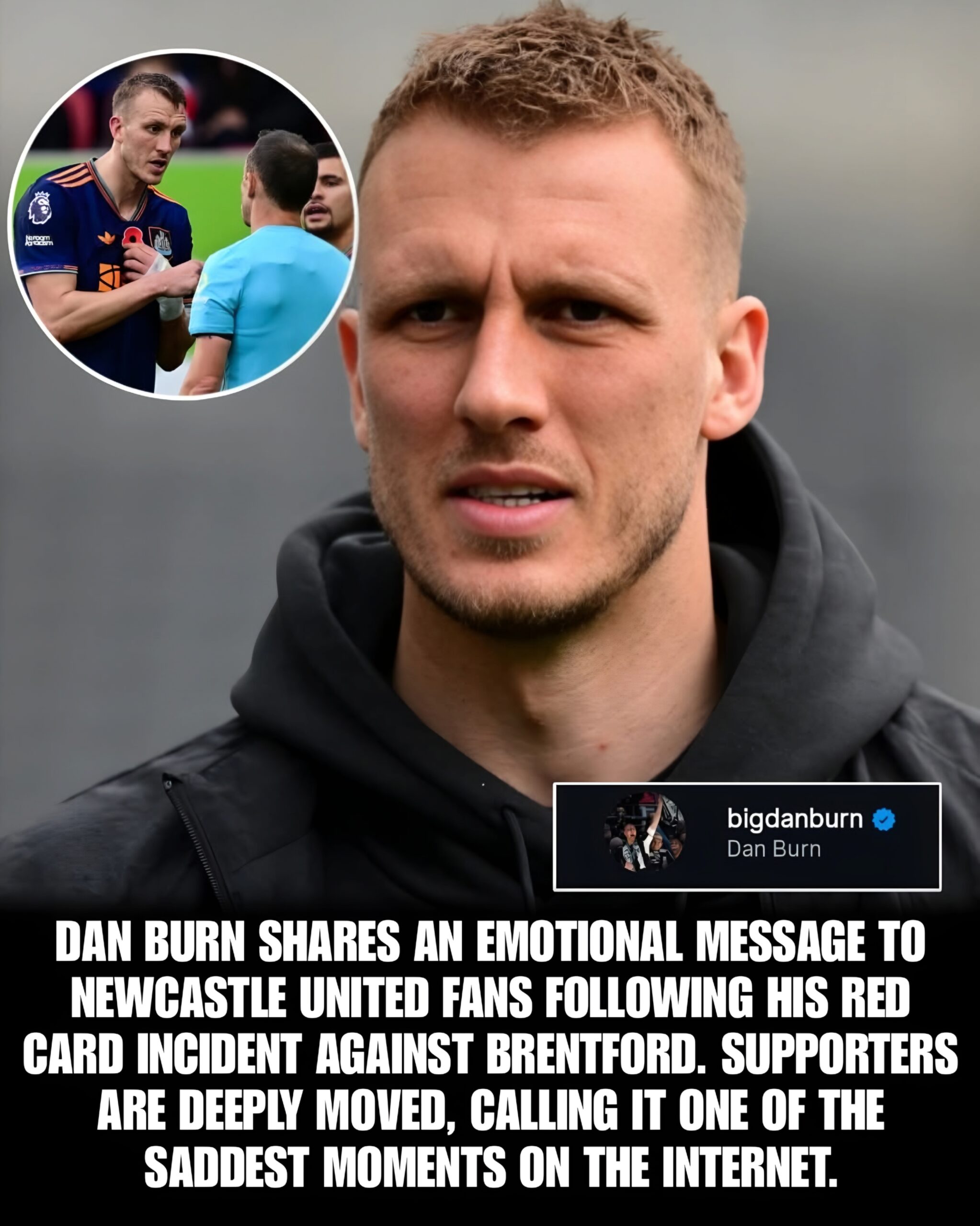 Dan Burn shares an emotional message to Newcastle United fans following his red card incident against Brentford. Supporters are deeply moved, calling it one of the saddest moments on the internet.