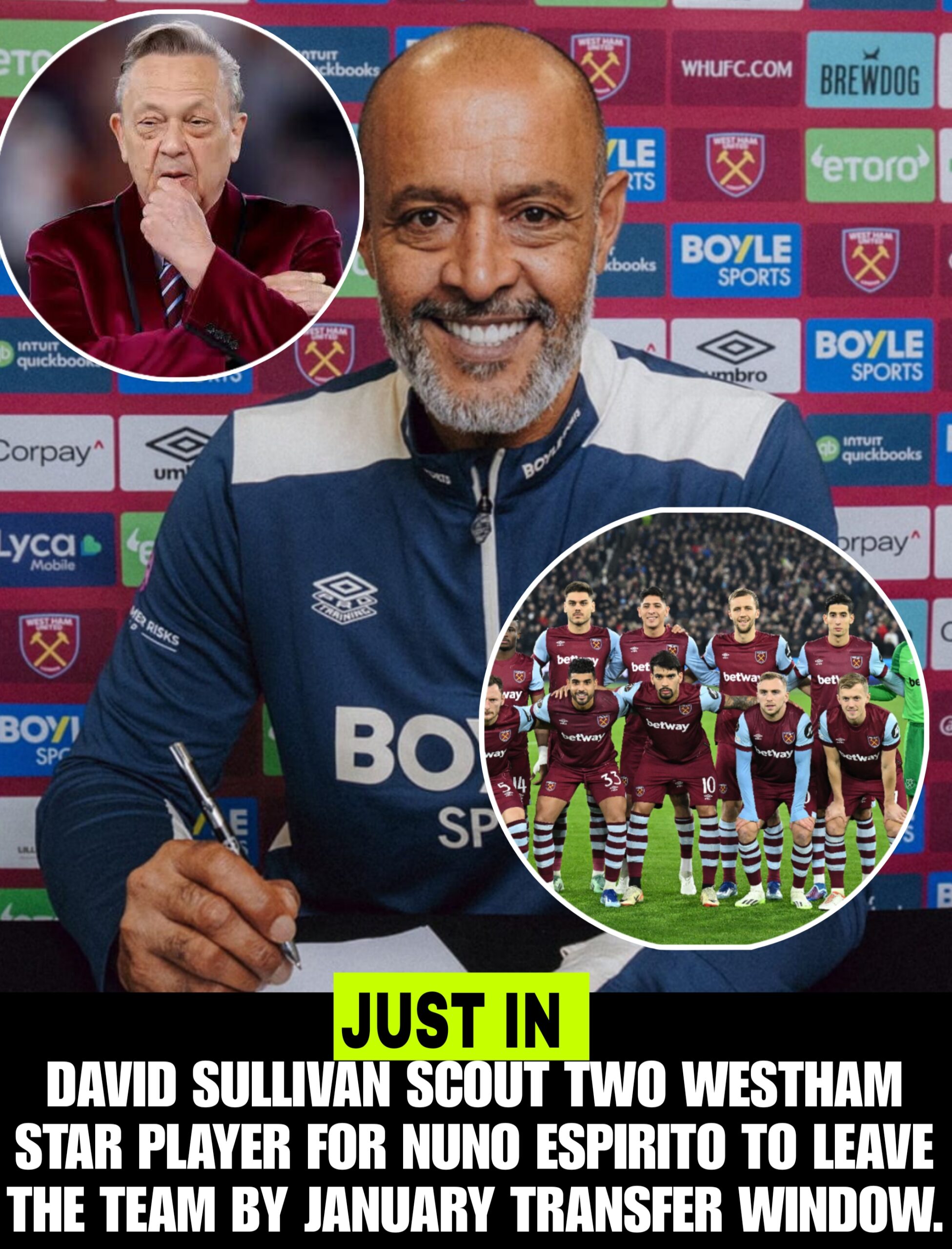 West Ham United chairman David Sullivan is reportedly ready to back manager Nuno Espírito Santo with a significant squad overhaul in the January transfer window, a move that will see at least two key players exit the club.