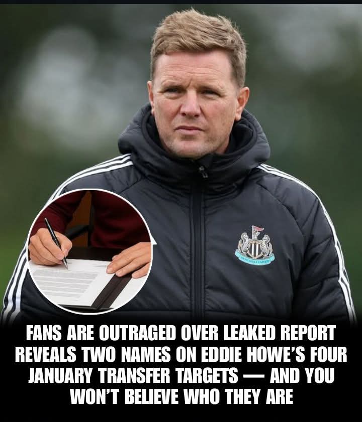 Newcastle United fans have been left furious and utterly bewildered after an alleged leaked report revealed two surprising names on Eddie Howe’s four-man January transfer shortlist. With the club battling injury woes and seeking to bolster their European push, supporters expected marquee names, but the two players revealed have been met with derision.